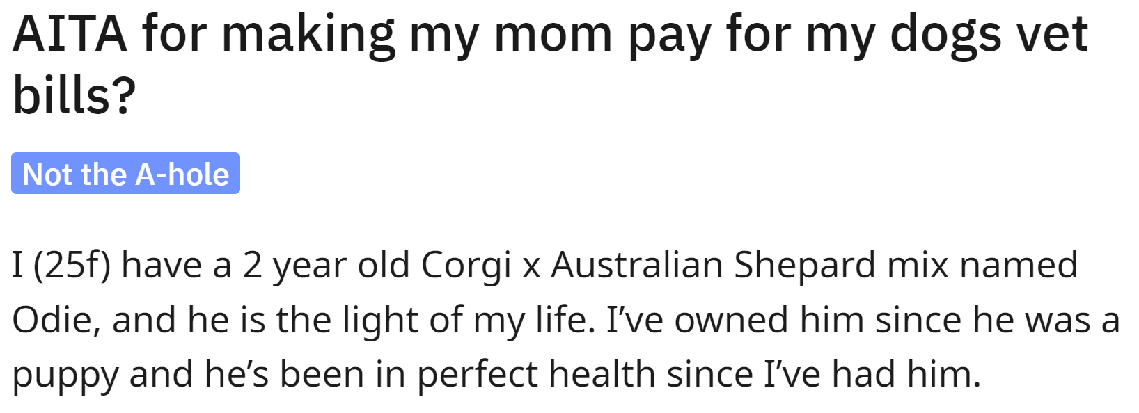 Woman Asks If She Was Wrong For Demanding Her Mother Pay For Her Dog’s Vet Bills