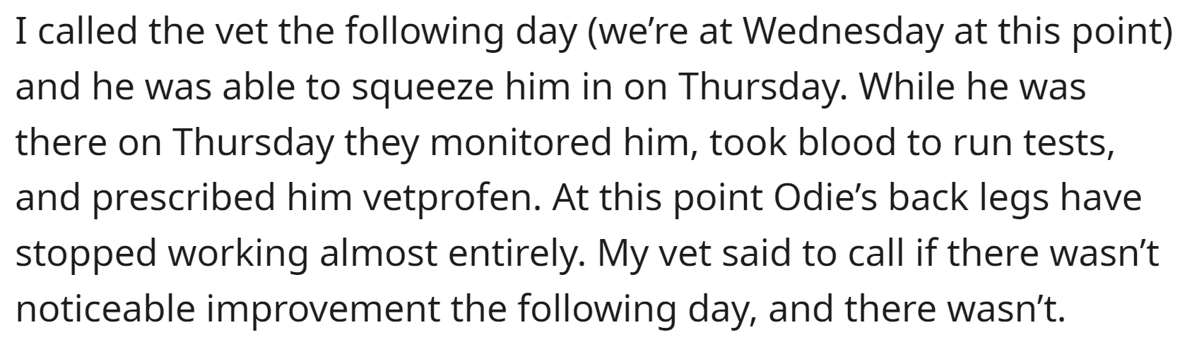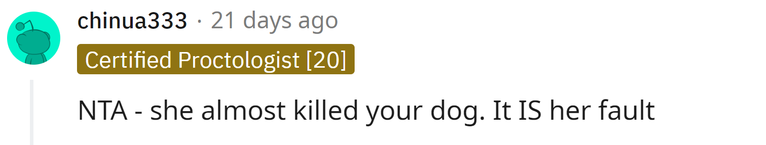 OP takes Odie to the vet who then gets a full treatment. Once the dog starts showing signs of recovery and manages to start walking again, OP confronts her mother for being so irresponsible. She further demands that her mother pays the veterinary bills for Odie’s treatments. OP takes the matter to the community of AITA and asks them if she was wrong for asking her mother to pay the dog’s vet bills.