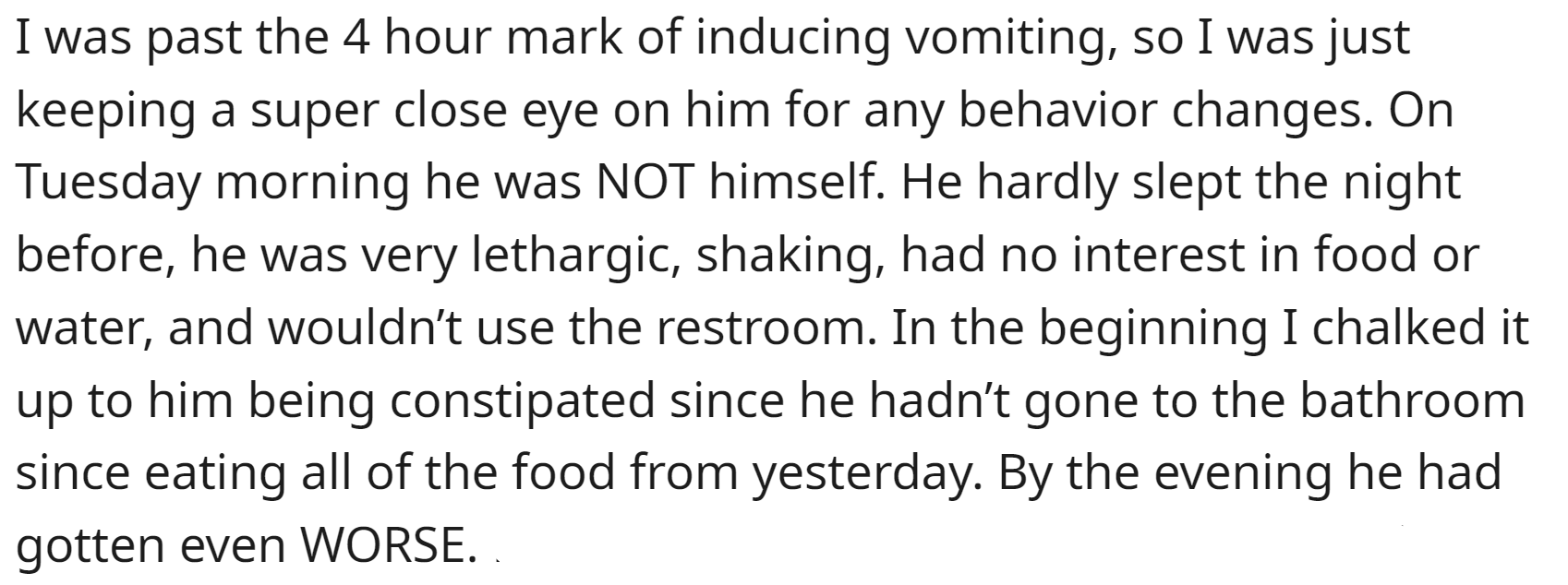 Today’s story showers light on the grievousness of this matter. Reddit user haleymillermccain shared how they had to leave home for a longer-than-usual period of time and their mother was taking care of her mix-breed dog named Odie. When OP returned home, she noticed how weird Odie’s stomach was looking so she instantly called her mother to ask what had she fed him. The mother responded with devastating news. She had fed Odie leftover food. Odie has a very sensitive stomach so she postpones all tasks and spends the whole nice awake with her dog but things start getting worse as he starts showing more and more symptoms of stomach infection.