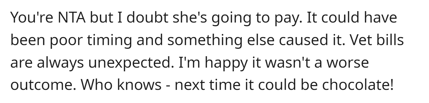 9. OP’s mother said it’s not her fault the dog got sick after she got asked to pay Odie’s vet bills.