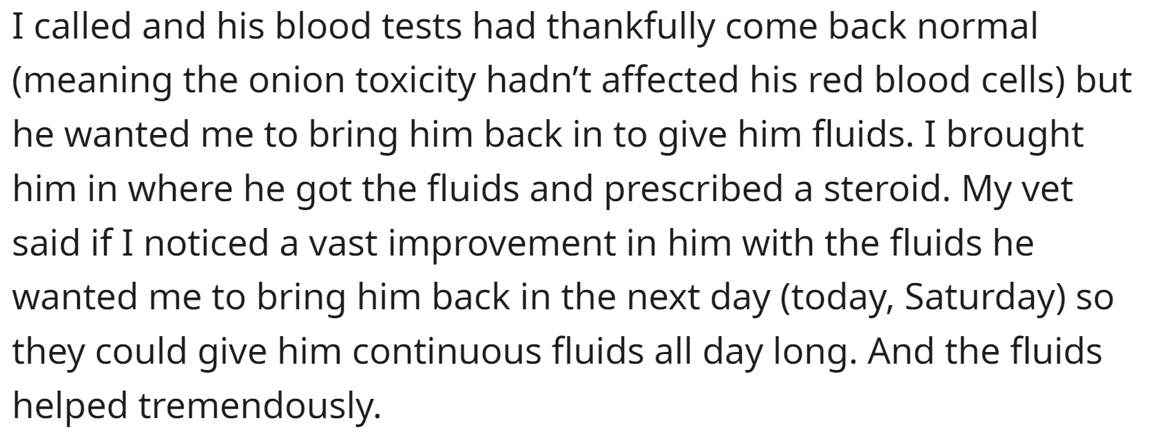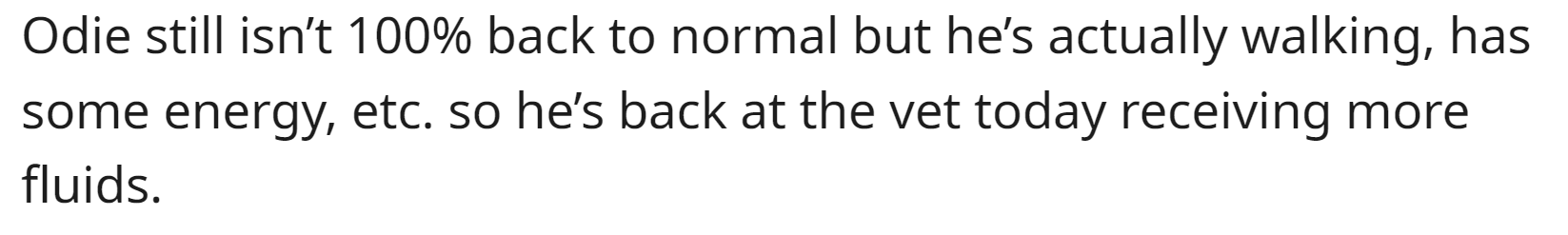 7. The doctors put OD on fluids which helped a lot in terms of improvement.