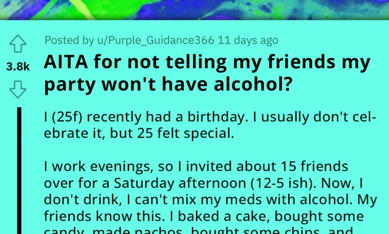 A woman found herself subject to judgment on the “Am I The A**hole?” (AITA) subreddit for neglecting to inform her friends about the alcohol-free nature of her afternoon birthday party.