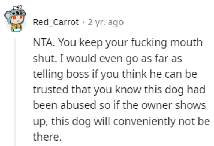 Now, a challenging decision loomed before OP. Should she disclose her knowledge about Spot’s owner to her superiors, or would it be wiser to remain tight-lipped?