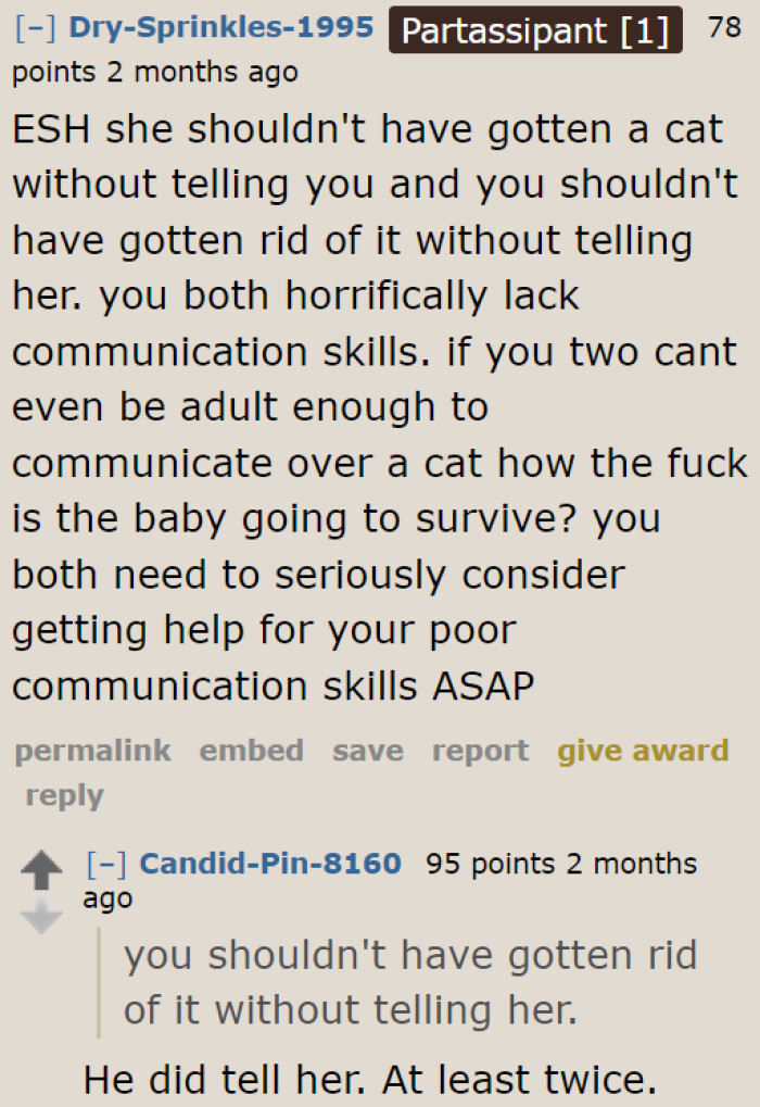 Man Has To Deal With His Pregnant Girlfriend Who Won’t Talk To Him After He Returned Her Newly Adopted Cat To The Shelter
