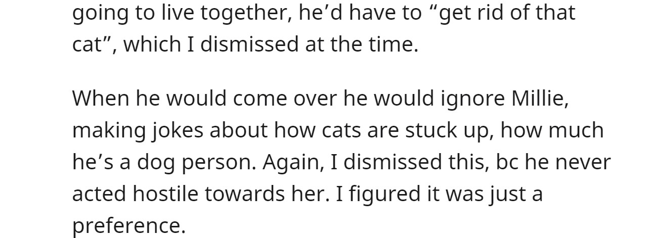 A Reddit user shared a personal anecdote, recounting a decision made when cohabitating with her boyfriend. This Redditor, referred to as “OP,” owned a cat named Millie. Her boyfriend, a professed dog enthusiast, playfully commented on Millie’s presence in their shared space. Jokes about parting with the cat ensued, and OP found amusement in his jests, deeming them lighthearted banter. Little did she know, his intentions were more earnest. A revelation led her to assert that she would not compromise her feline companion under any circumstances. The story took an unexpected turn when she observed something unsettling about her boyfriend’s behavior, prompting a dramatic development. The unfolding narrative can be found below.