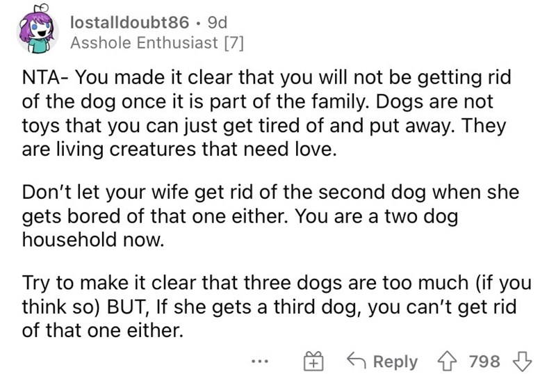 Brace yourself for an astonishing narrative that might prompt you to double-take and ensure your eyes aren’t playing tricks on you. Here unfolds a tale of a woman whose affection for dogs is matched only by her swift decision to rehome them once her interest wanes. Enter her husband, a fervent dog enthusiast who possesses an unyielding commitment to embracing any canine addition as a bona fide family member. However, harmony between their viewpoints proves elusive, leading to a complex confluence of events that tests the very foundations of their relationship.