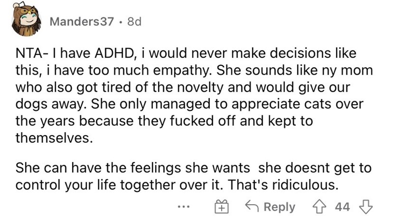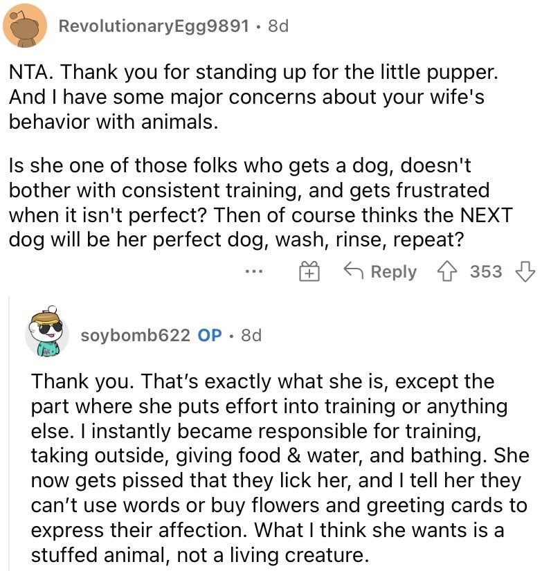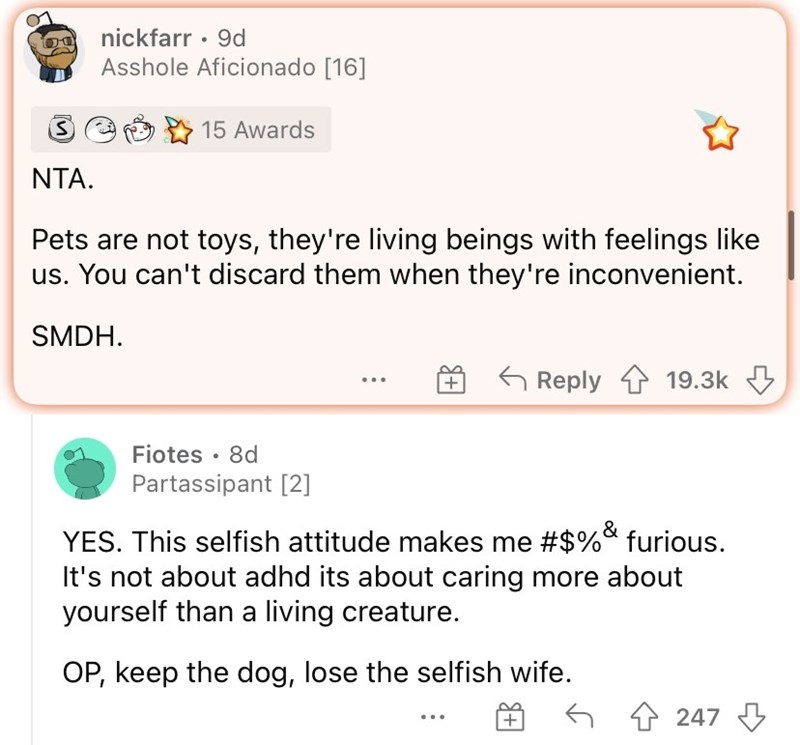 9. Amidst conjecture about ADHD, speculation looms regarding whether the wife’s actions toward her husband might mirror those exhibited toward her four-legged companions.