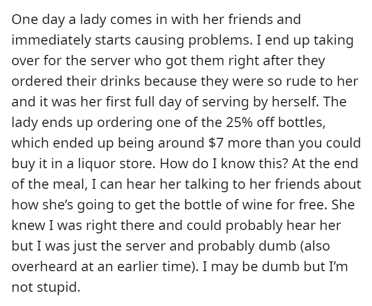 Consider this scenario: while you could easily procure a bottle of wine for less at Target, the cost at a restaurant encompasses more than the product itself. It’s a delicate equilibrium, considering the establishment’s overhead. Yet, an encounter unfolded where a patron believed that an audience with the manager would magically translate into a gratis bottle. However, reality had other plans, and her expectations crumbled.
