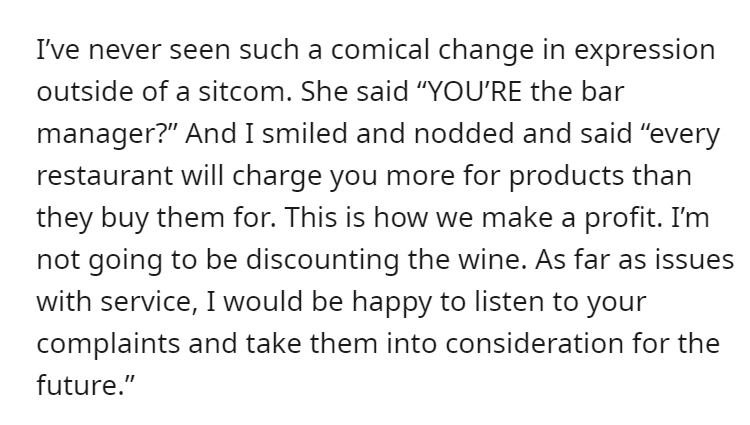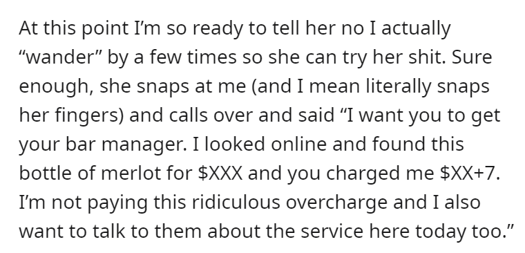 Karen Gets Shut Down When She Asks To Speak To The Manager For Overcharging On Wine