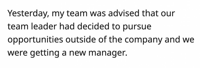 Days later, news spreads that the notorious boss is “exploring opportunities outside the company.” The team is on the cusp of receiving a new leader.