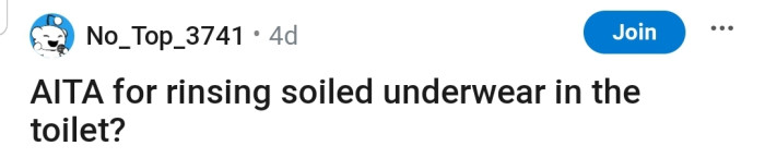 Likewise, the Reddit community extended their support to OP. Nonetheless, some individuals debated that rinsing underwear in the toilet, even after applying certain chemicals, might not constitute the best approach.