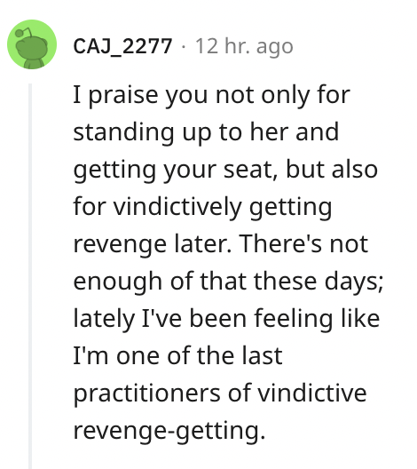 The nexus of this absurd drama rests squarely on Karen’s unwavering refusal to cede the seat. A simple act of accommodation would have averted this entire spectacle. Yet, her unyielding ego eclipsed common sense, inadvertently triggering OP’s clever countermeasure.