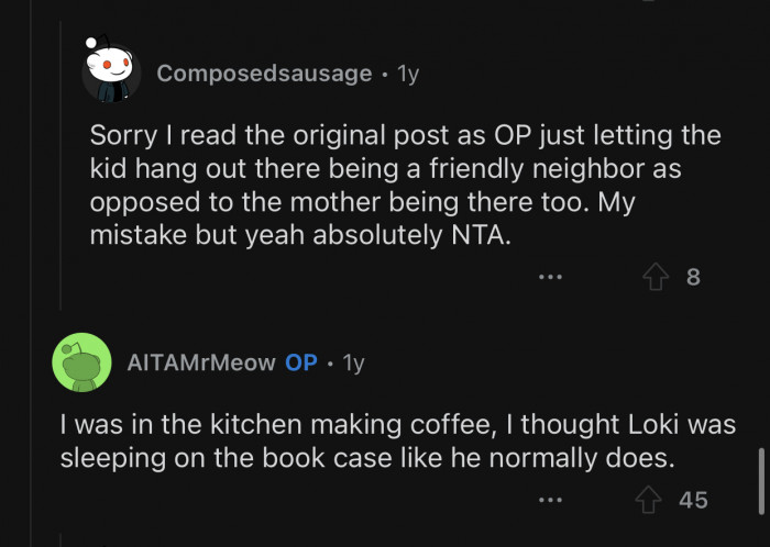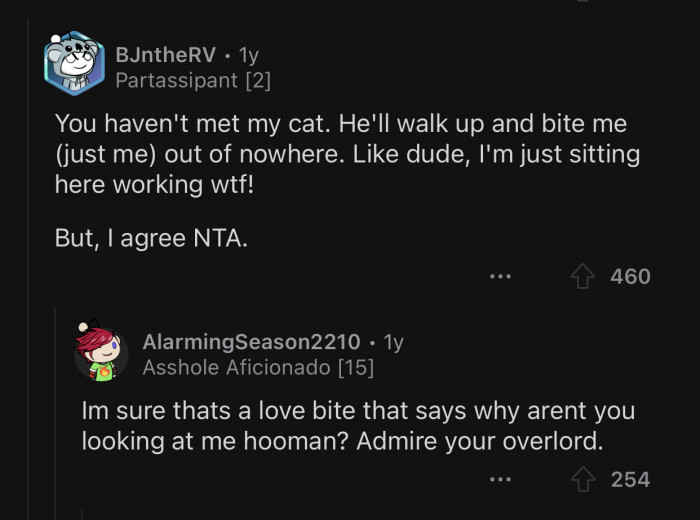 Behold the Reddit community’s reactions to u/AITAMrMeow’s account: