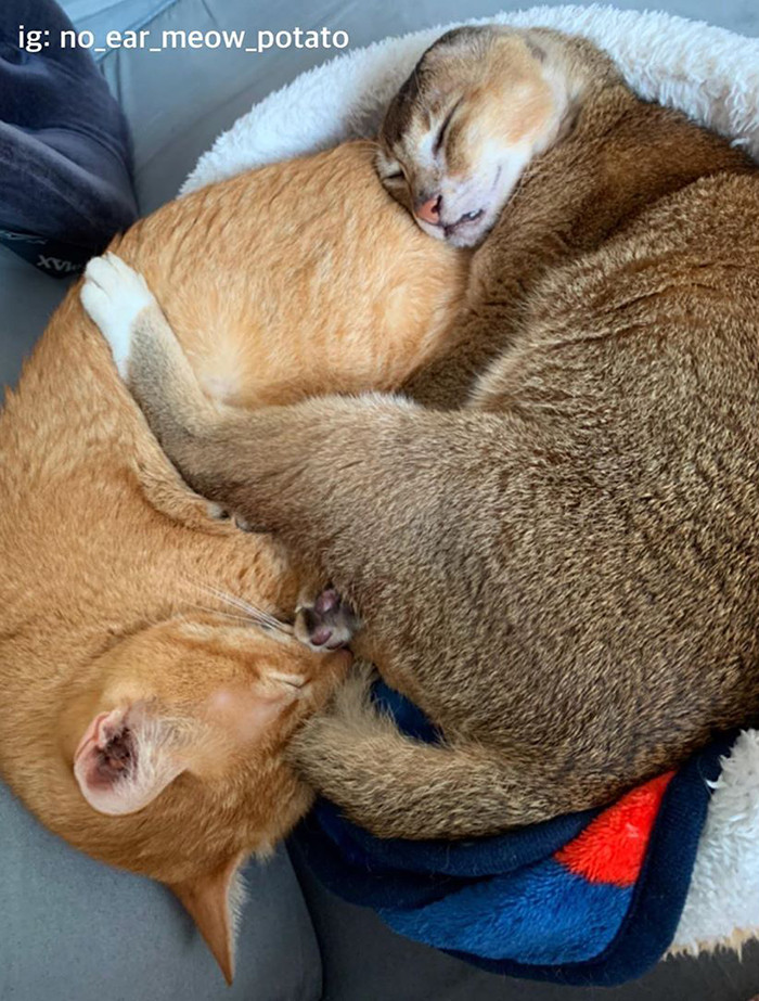 Miraculously, Potato is embracing his recovery journey with remarkable resilience. Not only has he found a permanent loving home, but he’s also forged a heartwarming bond with his new confidante, Horlick. Dispelling any doubts, Potato’s new family confirmed on their Instagram that his lack of ears hasn’t impaired his hearing abilities.