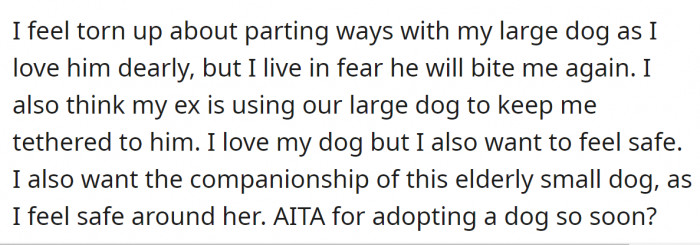 Redditor’s Ex Gets Furious Because She Adopts A New Dog After Giving Him Custody Of Their Old Aggressive Dog