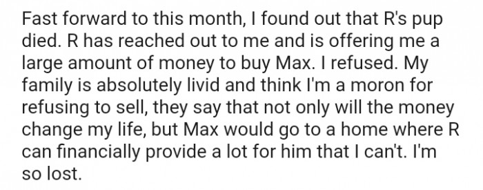 The OP’s resolute refusal of a substantial sum of money emphasized Max’s inestimable worth, transcending any monetary value.