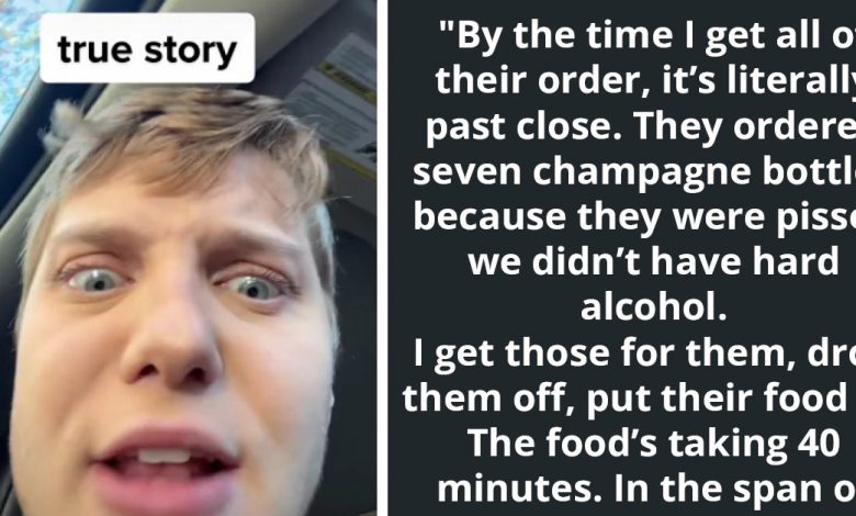 “By the time I get all of their order, it’s literally past close. They ordered seven champagne bottles because they were pissed we didn’t have hard alcohol.