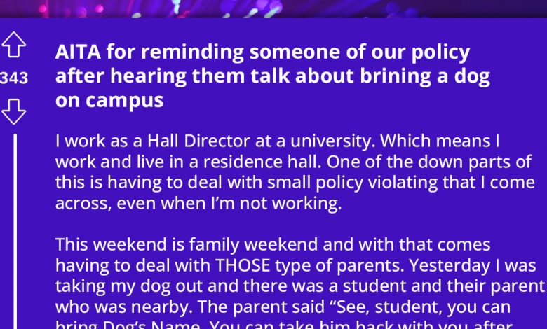 The individual behind the Reddit post resides within the same building as the students. During a family-oriented weekend event, they undertook a leisurely stroll with their own canine companion. This leisurely walk inadvertently intersected with a conversation between a student and their parent. The parent, observing the presence of the Reddit user’s dog, conveyed an assumption that pets were permissible on campus.