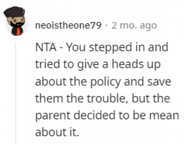 The Reddit user clarified to the parent that their employee status granted them permission to own pets.