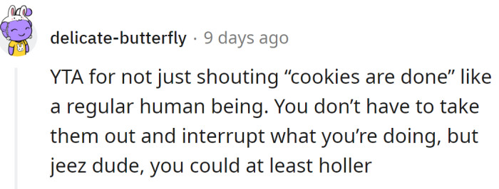 “YTA for not vocally announcing the timer’s completion.”