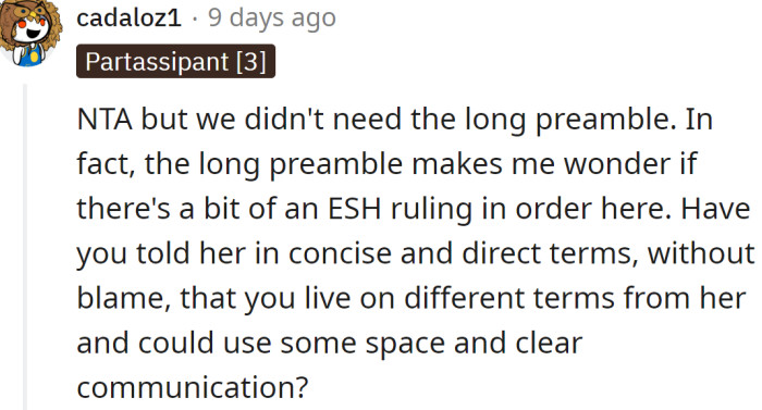 “NTA, but preamble could have been succinct.”