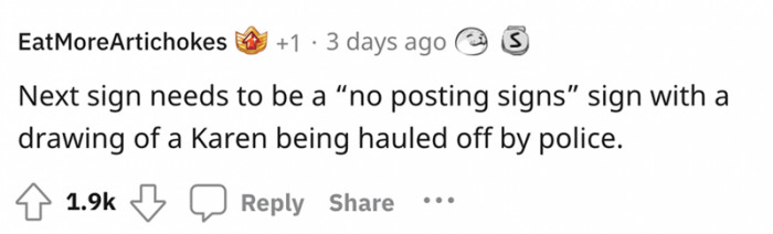 The Reddit thread garners over 5K upvotes, accompanied by nearly 200 responses. While some Redditors urged the OP to capture photographic evidence of the humorous signage prior to its removal, others voiced support for the manner in which the situation was addressed.