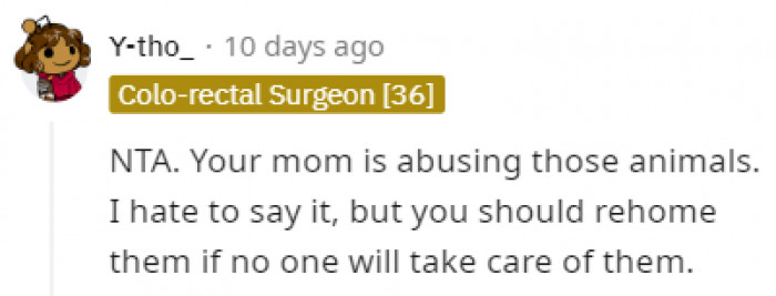 The family, including OP’s mother, attributed blame to OP for the distressing state of the pets…