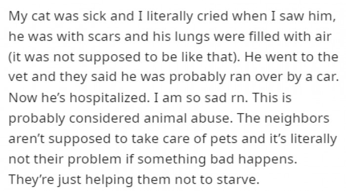 When no other caretakers remained available, the neighbors were entrusted with the welfare of OP’s dog and cat…