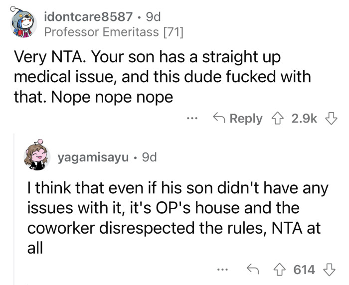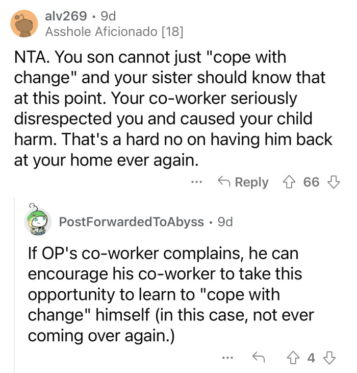 OP was entirely justified in prohibiting their coworker’s access to their home. Given the coworker’s breach of trust, their presence could distress OP’s son, considering the significant discomfort and pain he caused. If you enjoyed this narrative, be sure to explore similar content on our platform.