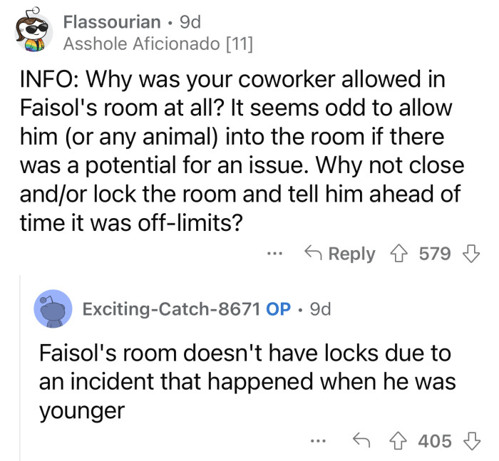 The possibility arises that the coworker deliberately permitted the dog to enter the son’s room.