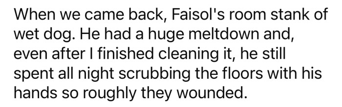 Unfortunately, OP’s son sustained an injury while vigorously cleaning his room’s floors.