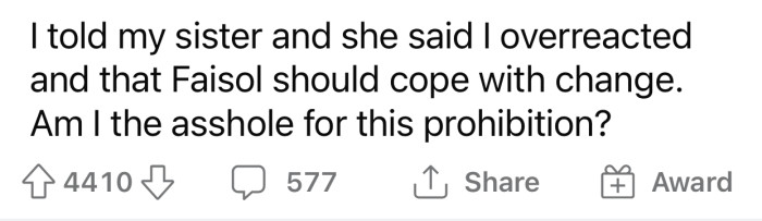 The r/AmItheAhole community displayed a diverse range of reactions to the Redditor’s predicament. Scroll down to read the entire Reddit post, and venture a little further to peruse the comments from the original thread.