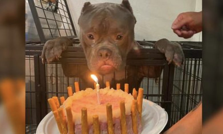 Happy birthday to him, the homeless dog shed tears of joy when celebrating his first ever birthday at the animal shelter