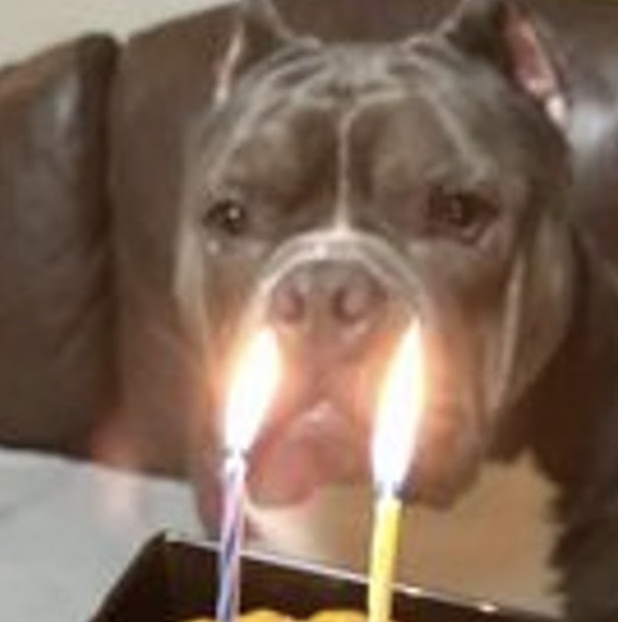 He had a happy birthday! When the homeless dog celebrated his first birthday at the animal shelter, he sobbed with delight.
