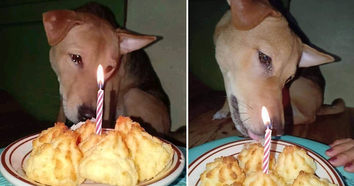 The once-abandoned dog met with joy: The dog shed tears as the new family held its first birthday party