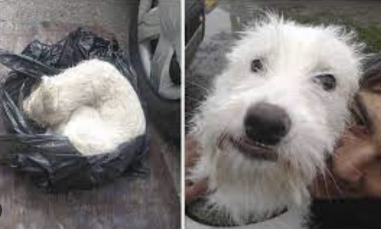 After being discovered nearly dead in a plastic bag, a small dog is given a new life