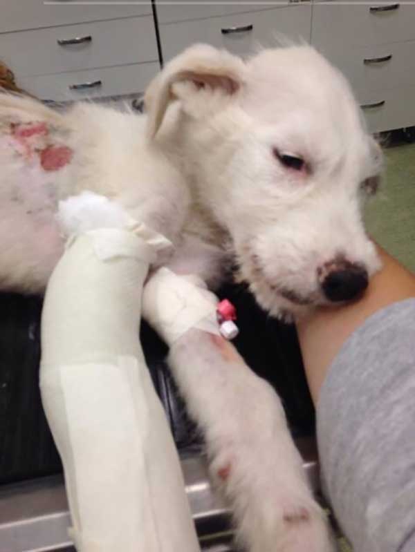 This poor innocent dog deserves all the love and care that she is getting after what she has endured!