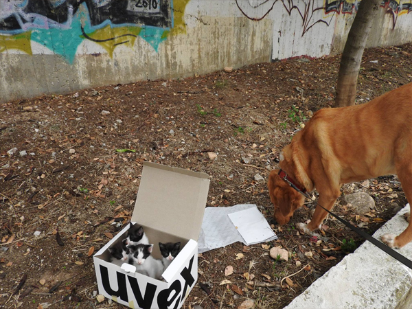 Aragon, an adopted dog, was being taken for a walk by a mountain near Athens when he spotted a box of ᴀʙᴀɴᴅᴏɴᴇᴅ kittens. His mom took them home to raise until they’re old enough to find families of their own, and Aragon has been a wonderful foster papa to them. In their area, as well as other areas of Gʀᴇᴇᴄᴇ, it has become common for people to dump litters of kittens. The poor kittens are defenceless against ᴘʀᴇᴅᴀᴛᴏʀs and do not sᴜʀᴠɪᴠᴇ long in the ᴡɪʟᴅ, which is why the boxes tend to be empty.