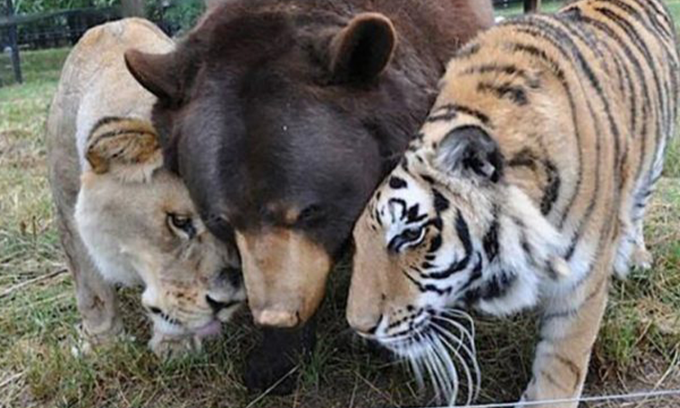 This is the story of an African lion (Leo), a Bengal tiger (Shere Khan), and a black bear (Baloo) who were all rescued in 2001 from the basement of a dr.ug de.aler in Atlanta, Georgia. All three animals are in desperate need of assistance. They of life are [tre.at.ed as sl.aves], to.rt.ured, and entertained. Baloo was discovered wearing a belt that was too tight and cu.t his skin, Leo had a cu.t on his face and was living in a small cage, and Shere Khan was [sev.erely ma.lnour.ished].