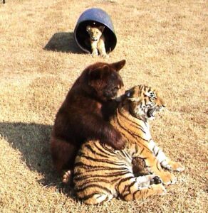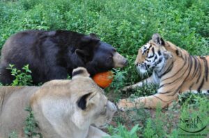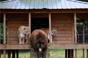 This is the story of an African lion (Leo), a Bengal tiger (Shere Khan), and a black bear (Baloo) who were all rescued in 2001 from the basement of a dr.ug de.aler in Atlanta, Georgia. All three animals are in desperate need of assistance. They of life are [tre.at.ed as sl.aves], to.rt.ured, and entertained. Baloo was discovered wearing a belt that was too tight and cu.t his skin, Leo had a cu.t on his face and was living in a small cage, and Shere Khan was [sev.erely ma.lnour.ished].