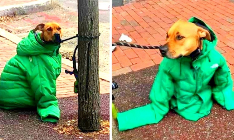 Woman Sees Dog Shivering In Cold Outside, Gives Her Own Coat To Keep Him Warmm