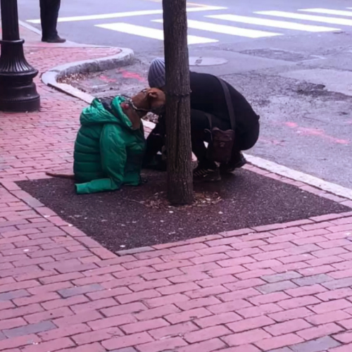 Kristina Hollie and her coworker were waiting for the bus at Harvard Square in Cambridge, Massachusetts, when they spotted an adorable dog running errands with his mom. His mom was getting ready to go into the post office and sadly couldn’t take the pup inside with her. She began to ᴛɪᴇ him to a tree and what she did next warmed the hearts of everyone watching.