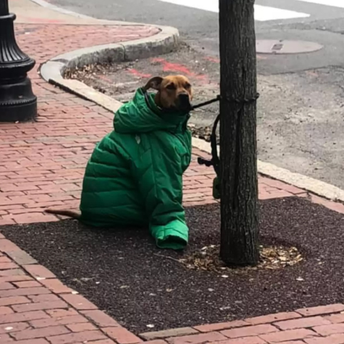 Woman Sees Dog Shivering In Cold Outside, Gives Her Own Coat To Keep Him Warmm