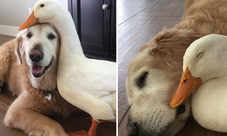 Barclay The Golden Retriever Befriended A Duck And They Are Inseparable Besties.
