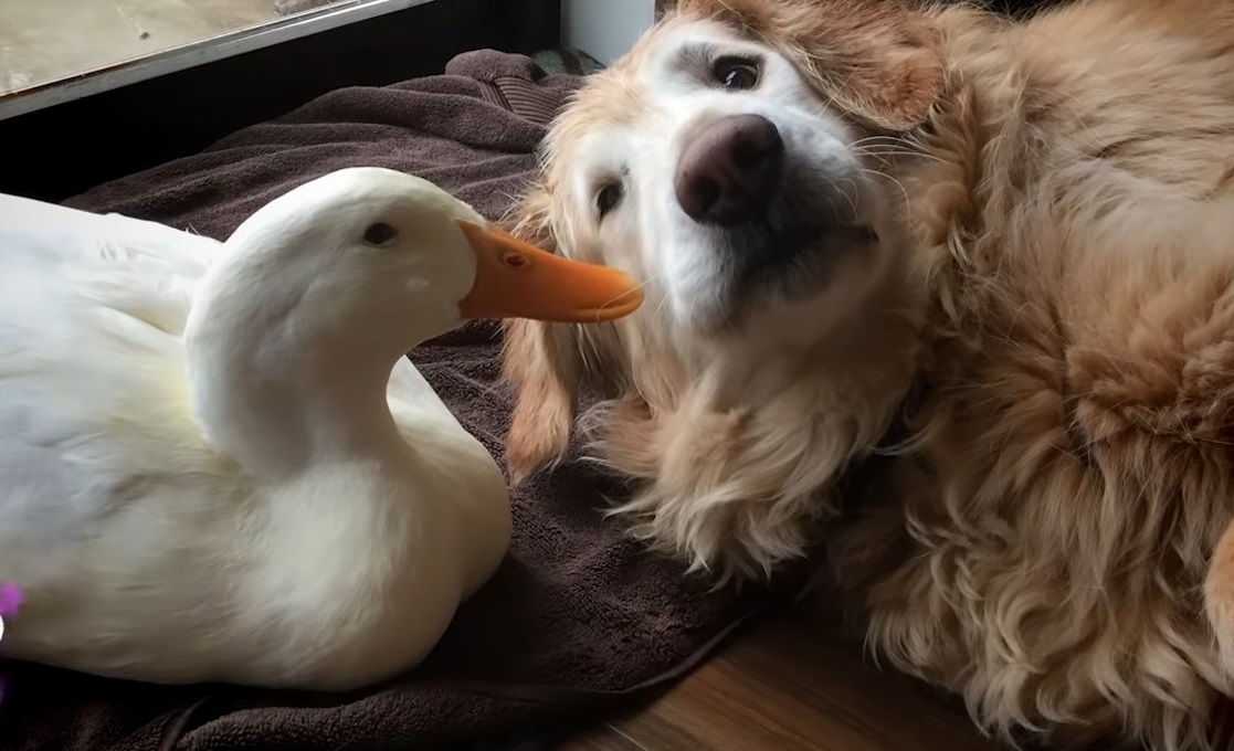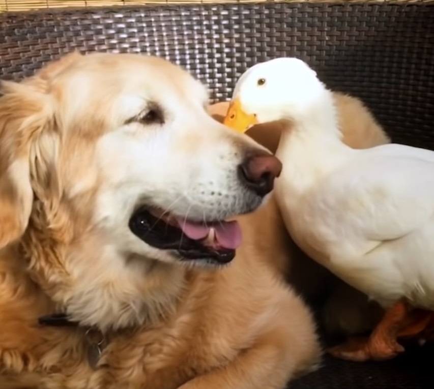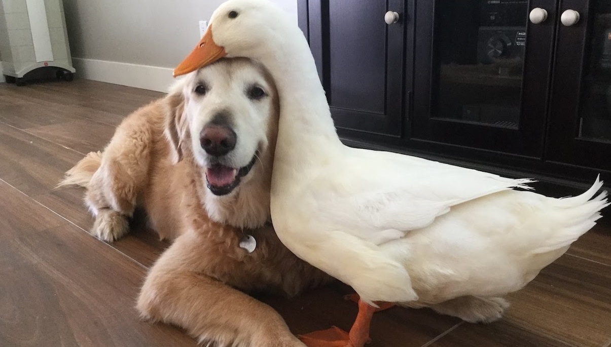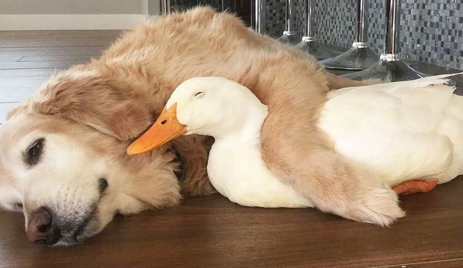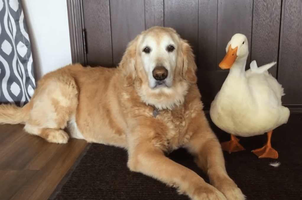 Barclay The Golden Retriever Befriended A Duck And They Are Inseparable Besties.