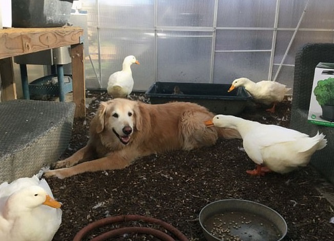 Rudy and Barclay, two golden retrievers, are best friends in every way. It’s wonderful to see the dog and duck spending so much time together, even though their strange courtship is mostly motivated by a desire for food. One of the seven ducks Pam Ishiguro keeps in Orange County is named Rudy. She stated that her dog Barclay wasn’t pleased when she originally got the flock of ducks.