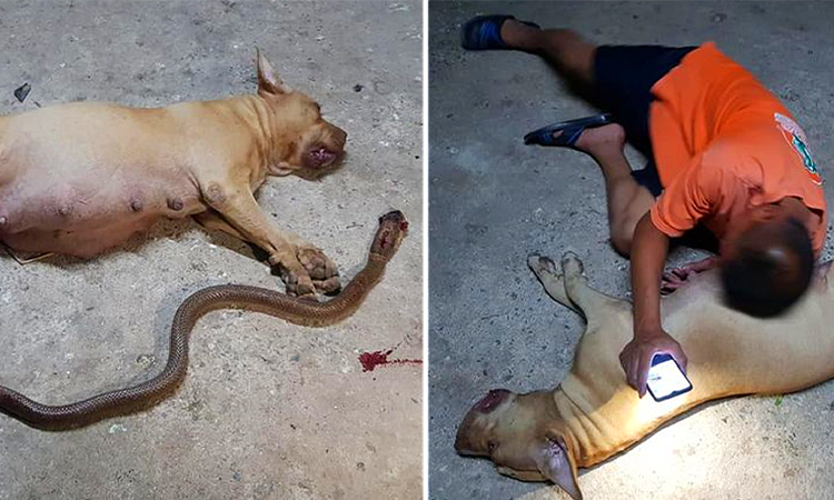 This pit bull sacrificed her life to protect her owners! Nong Horm, from Pathum Thani in central Thailand, rose to fame after defeating a snake in her family’s yard. The snake’s poison eventually claimed her life.