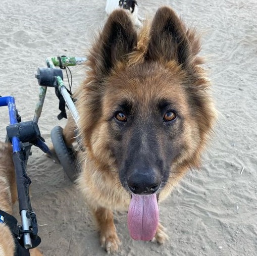 There are dogs of all sizes on the beach, from a tiny corgi to a huge german shepherd. It’s incredible how useful the canine wheelchair has been in saving lives.