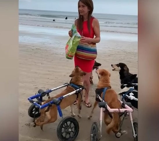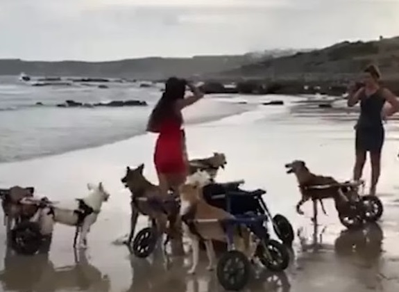 The touching moment when a woman takes her disabled dogs to the beach for a day of enjoyment.