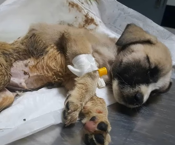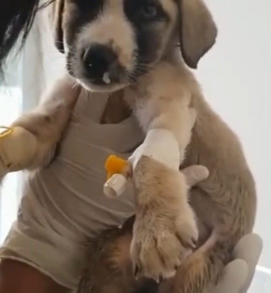 The puppy has improved over a month later, but he will still need to stay at the vet for his medication. Day by day, his health was improving.